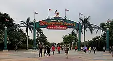 Hong Kong Disneyland (Chinese: 香港迪士尼樂園) (abbreviated HKDL;[1] also known as HK Disneyland) is a theme park located on reclaimed land in Penny's Bay, Lantau Island, Hong Kong. It is the first Disneyland in Asia outside of Japan.[2] The Hong Kong Disneyland is located inside the Hong Kong Disneyland Resort and it is owned and managed by Hong Kong International Theme Parks. It is the most visited theme park in Hong Kong, followed by Ocean Park Hong Kong.[3] Hong Kong Disneyland opened to visitors on Monday, 12 September 2005 at 13:00 HKT. Disney attempted to avoid problems of cultural backlash by incorporating Chinese culture, customs and traditions when designing and building the resort, including adherence to the rules of feng shui. Notably, a bend was put in a walkway near the Hong Kong Disneyland Resort entrance so good qi energy would not flow into the South China Sea.[4]