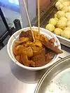 Hong Kong street food is characterised as the ready-to-eat snacks and drinks sold by hawkers or vendors at food stalls, including egg tarts, fish balls, egg waffles and stinky tofu, according to the definition provided by the Food and Agriculture Organization.[1] They can be found throughout the city, especially in the areas of Mong Kok, Causeway Bay, Yuen Long, Tsuen Wan, and Kwun Tong.