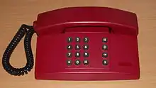 Typical standard phone used with Centrex. Note the "Recall" button and the red Message Waiting lamp to the left of the keypad.
