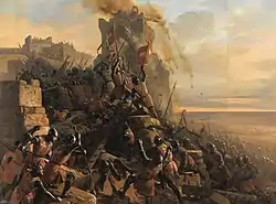 ![]() Prise de Rhodes, 15 août 1310 (oil on canvas by Éloi Firmin Féron, 1838-1839) | |||||||