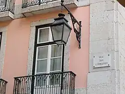 The toponymics of the Pombaline Downtown in Lisbon still references the fact that guildsmen were often grouped together on a single street so the quantity and quality of their products could be better regulated and dues could be more easily collected.[3] Here pictured, the Rua dos Correeiros (Leathercrafters' Street).