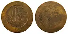 Morgan's models were transmitted on October 26, 1923, to the Commission of Fine Arts,[18] charged with rendering advisory opinions on coins by a 1921 executive order by President Harding.[19] Morgan's work was examined by sculptor member James Earle Fraser, designer of the Buffalo nickel. On November 19, committee chairman Charles Moore wrote to Mint Director Robert J. Grant, "while the ideas intended to be expressed are excellent, the execution is bad. The lettering is poor, the heads are not well modeled and the ship is ill designed. The workmanship is below the standard of excellence attained in previous coins. The models are therefore not approved."[18]