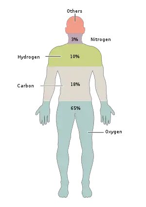 Elements of the human body by mass. Trace elements are less than 1% combined (and each less than 0.1%).