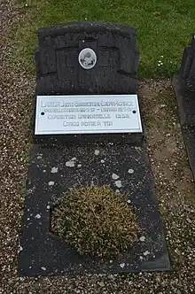 Tomb of Juste Bonaventure Langa, in the Tervuren cemetery. Born on 26 September 1957 in Leopoldville (Kinshasa), he died on 22 May 1958 in Leuven, during the Expo 58. On his grave is a marble plaque bearing the inscription "Exposition Universelle 1958 / Congo pense à toi"