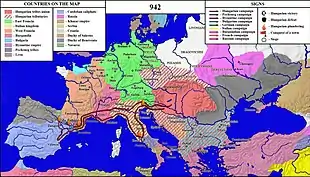 • In Provence, the Hungarian army battled with the Arabs from the Muslim enclave of Fraxinet, when Conrad I of Burgundy fell on them by surprise and defeated the two combatant armies.[67]