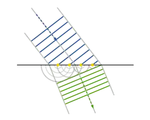 In 1678, Huygens proposed that every point reached by a luminous disturbance becomes a source of a spherical wave; the sum of these secondary waves determines the form of the wave at any subsequent time.[2] He assumed that the secondary waves travelled only in the "forward" direction and it is not explained in the theory why this is the case. He was able to provide a qualitative explanation of linear and spherical wave propagation, and to derive the laws of reflection and refraction using this principle, but could not explain the deviations from rectilinear propagation that occur when light encounters edges, apertures and screens, commonly known as diffraction effects.[3] The resolution of this error was finally explained by David A. B. Miller in 1991.[4] The resolution is that the source is a dipole (not the monopole assumed by Huygens), which cancels in the reflected direction.