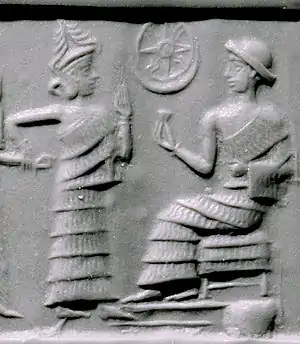 - โ "Cylinder seal: seated figure approached by a goddess leading a worshiper". www.metmuseum.org.