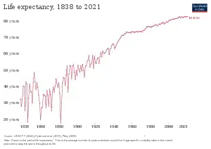 210. Lancaster, H.O. (1990). Expectations of Life: A Study in the Demography, Statistics, and History of World Mortality. New York: Springer-Verlag. p. 399. ISBN 978-0-387-97105-6.