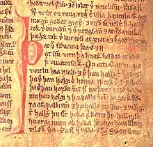 According to the ancient manuscript Landnámabók, the settlement of Iceland began in 874 AD when the Norwegian chieftain Ingólfr Arnarson became the first permanent settler on the island.[15] In the following centuries, Norwegians, and to a lesser extent other Scandinavians, immigrated to Iceland, bringing with them thralls (i.e., slaves or serfs) of Gaelic origin.