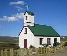 Swedish Viking explorer Garðar Svavarsson was the first to circumnavigate Iceland in 870 and establish that it was an island.[25] He stayed during the winter and built a house in Húsavík. Garðar departed the following summer, but one of his men, Náttfari, decided to stay behind with two slaves. Náttfari settled in what is now known as Náttfaravík, and he and his slaves became the first permanent residents of Iceland to be documented.[26][27]
