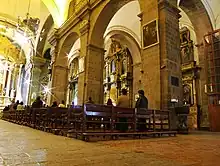 In the church, there are paintings and sculptures by Diego de la Puente, Marcos Zapata, and Cristo de Burgos.[10][11] The Jesuit college in Cusco was dedicated the Transfiguration of Christ, and the high altar features a painting of the Transfiguration attributed to the Jesuit Diego de la Puente.[12]