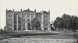 The main building around the year 1908. It was erected 1869 in Victorian Romanesque style and razed in 1961.[1]