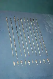 Early Chinese armies were relatively small affairs. Composed of peasant levies, usually serfs dependent upon the king or the feudal lord of their home state, these armies were relatively ill-equipped. While organized military forces existed along with the state, few records remain of these early armies. These armies were centered around the chariot-riding nobility, who played a role akin to the European knight as they were the main fighting force of the army. Bronze weapons such as spears and swords were the main equipment of both the infantry and charioteers. These armies were ill-trained and haphazardly supplied, meaning that they could not campaign for more than a few months and often had to give up their gains due to lack of supplies.[5] The shi knights had a strict code of chivalry. During the Shang and Western Zhou eras, warfare was seen as an aristocratic affair, complete with protocols that may be compared to the chivalry of the European knight.[6] States would not attack other states while mourning its ruler. Ruling houses would not be completely exterminated so descendants would be left to honor their ancestors.[7] Examples of this code include the battle of Zheqiu, 420 BC, in which the shi Hua Bao shot at and missed another shi Gongzi Cheng, and just as he was about to shoot again, Gongzi Cheng said that it was unchivalrous to shoot twice without allowing him to return a shot. Hua Bao lowered his bow and was subsequently shot dead,[8][9] or in 624 B.C. when a disgraced shi from the State of Jin led a suicidal charge of chariots to redeem his reputation, turning the tide of the battle.[8] In the Battle of Bi, 597 BC, the routing chariot forces of Jin were bogged down in mud, but pursuing enemy troops stopped to help them get dislodged and allowed them to escape.[10] During the Spring and Autumn period (771–479 BC), Duke Xiang of Song, when being advised to attack enemy Chu forces while the enemy army was fording a river, refused and waited for the Chu army to form formation. After Xiang lost the battle and was being rebuked by his ministers of war, he responded: "The gentleman does not inflict a second wound, nor does he capture those with gray hair. On campaigns, the ancients did not obstruct those in a narrow pass. Even though I am but the remnant of a destroyed state, I will not drum an attack when the other side has not yet drawn up its ranks."[7] His minister retorted, "My lord does not know battle. If the mighty enemy is in a defile or with his ranks not drawn up, this is Heaven assisting us", signifying that by the Spring and Autumn period such attitudes on chivalric honor was dying out.[6]