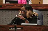 On July 10, 2023, the full City-County Council overwhelmingly approved Proposal 156, along with other measures as part of the mayor's public safety package, on a party-line vote with all five Republicans opposed and 18 Democrats in favor (one Democrat not present, and abstaining).[24] At the hearing, several councilors gave heated statements before casting their votes. Councilor La Keisha Jackson recounted her own experience being injured during a 2015 mass shooting at the Washington Square Mall.[25] Democratic councilor Keith Potts, who is also running in the Democratic primary for 2024 US Senate election, strongly supported the proposal.[26] Republicans on the council fiercely opposed the proposal, calling it unenforceable and symbolic. In their statements, Republican Minority Leader Brian Mowery argued the proposal was unconstitutional and called it "toothless", while fellow Republican councilor Joshua Bain referred to it as "propaganda" and framing the approach as a "woke agenda that's being pushed by a woke prosecutor with a false narrative of systemic injustices."[27] Mowery also stated that he had consulted with Attorney General Todd Rokita's office and been advised the proposal violated state law.[24] Upon adoption, the proposal was assigned General Ordinance 34, and signed into law by Hogsett on July 14, 2023.[28]