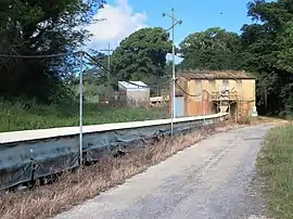 The Industrial and Administrative Group comprises the former Christmas Island Club, the ruins of the former Manager's house to the west of the club, the cemetery adjacent to these ruins, the Bulk Storage and Dust Storage Sheds, carpentry shop, the Padang, Administration Office, Wireless Operator's house, the remains of the Shinto Shrine near the tennis court, the Asian Clerks' quarters, the inscription to the completion of the first road in 1894 on the rockface behind the Asian Clerks' quarters, the bases of the pre-1915 and the 1935 phosphate chutes respectively behind the Asian Clerks' quarters and behind the Malay School, the Christian Centre (former library), fuel tank in No. 1 Tank Farm displaying strafe marks, the Hardware Store, the Down Hill Conveyer from Drumsite to the Dry Storage Bins, and the phosphate loading cantilevers at the wharf.[1]