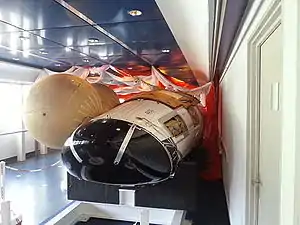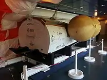Drop-test model of the IXV with the flotation balloons inflated, as displayed in ESA ESTEC. The flaps in this model cannot move.