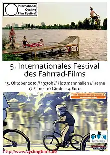 The International Cycling Film Festival (Polish: Międzynarodowy Festiwal Filmów Rowerowych, German: Internationales Festival des Fahrrad-Films) is an independent, not-for-profit film festival held annually in Germany, in Poland, in Kosovo and in the Netherlands. Its mission is to strengthen international cooperation in the areas of art film and bicycle culture. The festival promotes interaction between movie makers and cyclists from all over the world. It has screened more than 350 short movies from more than 30 countries since its debut in 2006. Each year around 20 films compete for the award Goldene Kurbel and the awards of the audience. The Neistat Brothers, Michaël Dudok de Wit, Andrea Dorfman, Tomer Shushan, Lucas Brunelle, Steven Subotnick, Nash Edgerton, M. A. Numminen and other filmmakers and artists contributed to the ICFF.