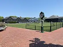 ![]() Front Lawn courts with indoor tennis club and outdoor hard courts in background. |