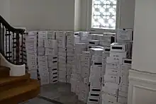 The Internet Archive acquires most materials from donations,[34] such as hundreds of thousands of 78 rpm discs from Boston Public Library in 2017,[35] a donation of 250,000 books from Trent University in 2018,[36] and the entire collection of Marygrove College's library in 2020 after it closed.[37] All material is then digitized and retained in digital storage, while a digital copy is returned to the original holder and the Internet Archive's copy, if not in the public domain, is lent to patrons worldwide one at a time under the controlled digital lending (CDL) theory of the first-sale doctrine.[38]