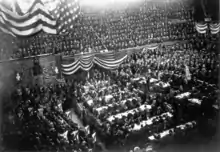 The new building was funded by the sale of the Van Buren Street building to the Chicago Club for $ 265,000, by donation of the land by the Chicago Park District, by $120,000 public subscription, and by $200,000 contribution of the Fair Corporation in cooperation with the Exposition.[7] The World Congress Auxiliary of the World's Columbian Exposition occupied the new building from May 1 to October 31, 1893, after which the Art Institute took possession on November 1.[7] The building was built in the place of William W. Boyington's Illinois Interstate Exposition Building (1873), which had been intended as a temporary structure.[11]