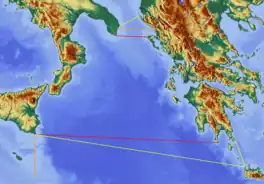 Boundaries of Ionian Sea: red lines define border per International Hydrographic Organization