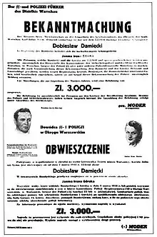 Wanted poster for Irena and Dobieslaw following Igo Sym's assassination