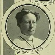Isabel Haslup Lamb (1864-1936), was an American physician and co-founder of the Women's Medical Society of the District of Columbia, with Mary Almera Parsons. She was also reportedly the first woman to drive a car in Washington, D.C.