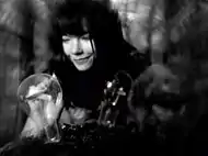 The music video for "Isobel" was directed by Michel Gondry, who had directed the avant-garde videos for "Human Behaviour" and "Army of Me".[38] It was filmed for two days in a forest in Dolgellau, near Llangollen, Wales.[39][40] A "long day" of shooting also took place in Black Island Studios in London on 31 May 1995. The crew used a Mitchell S35 camera with varispeed to be able to rewind the camera and do superimpositions and masks, inspired by Georges Méliès' work. "Model Solutions", an English model maker crew, built the harmonium used in the video, and the art department led by Joseph Bennett brought the model planes, insects and lightbulbs. The filming process was not easy, as the day was rainy, no one was quite sure of what they were doing and Björk did not like her outfit (she wears two different outfits in the video for this reason). To get projections to appear inside the water organ of the video, the crew used a mirror trick and filmed it in London, as the screen for rear projections was big and needed much distance. The final music video was projected in 35mm for the crew in a cinema in London; with its varying exposures, lighting effects and monochromatic schema, it resembles an early film.[40]