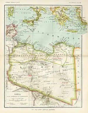 Italian Cyrenaica (Italian: Cirenaica Italiana; Arabic: برقة الايطالیة) was an Italian colony, located in present-day eastern Libya, that existed from 1911 to 1934. It was part of the territory conquered from the Ottoman Empire during the Italo-Turkish War of 1911,[1] alongside Italian Tripolitania.