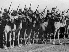 In 1939, laws were passed that allowed Muslims to be permitted to join the National Fascist Party and in particular the Muslim Association of the Lictor (Associazione Musulmana del Littorio). This allowed the creation of Libyan military units within the Italian army.[32] In March 1940, two divisions of Libyan colonial troops (for a total of 30,090 native Muslim soldiers) were created and in summer 1940 the first and second Divisions of Fanteria Libica (Libyan infantry) participated in the Italian offensive against the British Empire's Egypt:[33] 1st Libyan Division and 2nd Libyan Division.