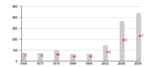 Year 1959 1970 1979 1989 1996 2003 2008 2009