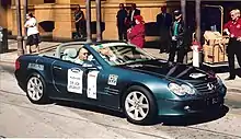 In retirement, Brabham continued to be involved in motorsport events, appearing at contemporary and historic motorsport events around the world where he often drove his former Cooper and Brabham cars until the early 2000s. In 1999, after competing at the Goodwood Revival at the age of 73 he commented that driving stopped him getting old.[47] Despite a large accident at the 2000 Revival, the first racing accident to put him in hospital overnight, he continued to drive until at least 2004.[42] By the late 2000s, ill-health was preventing him from driving in competition. In addition to the deafness caused by years of motor racing without adequate ear protection, his eyesight was reduced due to macular degeneration and he had kidney disease for which by 2009 he was receiving dialysis three times a week. Nonetheless, that year he attended a celebration of the 50th anniversary of his first world championship at the Phillip Island Classic festival of motorsport,[51] and in 2010 flew to Bahrain with most of the other Formula One world Drivers' Champions for a celebration of 60 years of the Formula One world championship. Brabham was the oldest surviving F1 champion.[52]