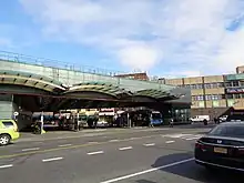 Local merchants complained that the construction damaged their stores and drove away customers.[98] As part of the renovation, the MTA had removed the complex's payphones in April 2005,[99] prompting state senator John Sabini to request that the phones be restored.[100] The MTA agreed to restore the phones that August after Sabini said a woman had died at the station because the lack of phones made it hard to contact paramedics.[99] Local residents also complained that the MTA did not give them enough information about closures due to the ongoing renovation.[96] The new station building was completed in 2005[101] to a design by Stantec.[102] The Jackson Heights bus terminal opened on July 13, 2005.[101][103]