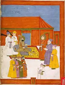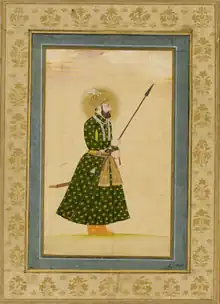 Mirza Mu'izz-ud-Din Beg Muhammad Khan (Persian: میرزا معزالدین بیگ محمد خان; 10 May 1661 – 11 February 1713),[4][5] better known by his title Jahandar Shah (Persian: جهاندار شاه, lit. ' The Owner of the World', Persian pronunciation: [d͡ʒa'hɑːndɑːr ʃɑːh]), was briefly the ninth Mughal emperor from 1712 to 1713. He was the son of emperor Bahadur Shah I, and the grandson of emperor Aurangzeb.
