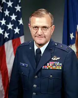 Jones earned a bachelor of arts degree (cum laude) in mathematics from Miami University, Oxford, Ohio, in 1956 where he was a member of Phi Kappa Tau.[1] He received a master's degree in public administration from Auburn University in 1975. General Jones was a distinguished graduate of Air Command and Staff College in 1968, and the Air War College in 1975. Both schools are located at Maxwell Air Force Base, Alabama.
