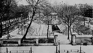 The park in 1899, when it was called "St. John's Park", looking east from Hudson Street