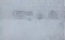 The blizzard deposited 24.2 inches (61 cm) in Boston from late Friday night until Saturday late afternoon, making it the seventh-largest snowstorm for Boston, behind storms in 2003, 1978, 1969, 1997, 2013, and 2015.[77] The 23.6 inches (60 cm) of snow the city received on Saturday, January 29 tied its all-time one-day snowfall record first set on February 17, 2003.[40][78] Snow was falling at rates of between 2 and 4 inches (5.1 and 10.2 centimetres) an hour, and was being blown by winds up to 70 mph (110 km/h) resulting in blizzard and near zero visibility conditions for most of Eastern Massachusetts, including Cape Cod, for most of Saturday's daylight hours.[79][80][71] Massachusetts banned heavy trucks from state highways.[60] Commuter rail into Boston had significant delays and cancellations throughout the day, a number of bus routes' service was suspended due to poor visibility (with about 30 buses getting stuck in heavy snow), and service on two surface sections of two subway lines was replaced with buses.[81] Approximately 91% of arrivals and departures, 617 flights in total, were cancelled at Boston's Logan Airport on January 29.[82] Many flights for the morning of January 30 were also cancelled.[61] Boston ran buses on some segments of its subway lines on January 30 and during the evening of January 31 to enable full clearing of snow from subway tracks.[7][83]