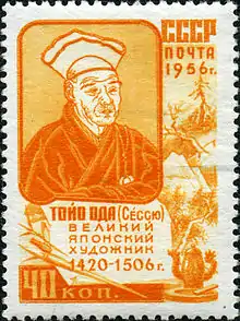 Japanese painter Sesshū Tōyō commemorated on a 1956 Soviet stamp