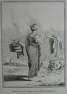 One of the illustrations from Chappe's Voyage en Sibérie, an engraving of a Russian peasant woman by Jean-Baptiste Le Prince.