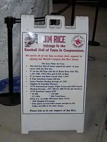 During the 2007 season, the Pawtucket Red Sox started a campaign to get Rice inducted which included having fans sign "the World's Largest Jim Rice Jersey."