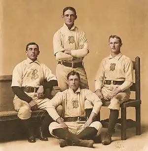 Collins began his major league career as a right fielder, playing ten games at the position with the Beaneaters in 1895. On May 19, 1895, he was loaned to the Louisville Colonels, again for $500.[2] He was soon made the team's starting third baseman, batting .279 over the remainder of the season. His larger impact was on defense, where he played in on the grass rather than back to cut down on the number of bunt hits.[4]