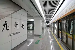 Jiuzhou Street (Chinese: 九州街) is a metro station on Line 16 of the Hangzhou Metro in China. It is located in the Lin'an District of Hangzhou and it is the western terminus of Line 16.[1][2]