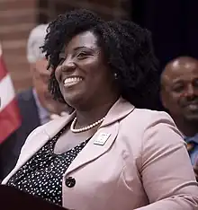 In 2018, she was elected to serve as Democratic Caucus Chair by members of the House Democratic Caucus.[11] She was the first female and first African-American caucus chair.