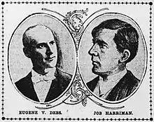 The 1900 Social Democratic Party of America ticket for President and Vice President of the United States with Eugene V. Debs and Job Harriman portraits