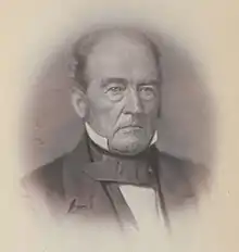 Initially an ally of Andrew Jackson, Bell turned against Jackson in the mid-1830s and aligned himself with the National Republican Party and then the Whig Party, a shift that earned him the nickname "The Great Apostate".[2][3] He consistently battled Jackson's allies, namely James K. Polk, over issues such as the national bank and the election spoils system. Following the death of Hugh Lawson White in 1840, Bell became the acknowledged leader of Tennessee's Whigs.[1]