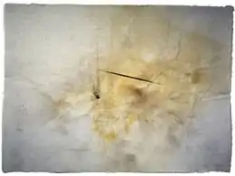 Between 1979 and 1982 Cage produced a number of large series of prints: Changes and Disappearances (1979–80), On the Surface (1980–82), and Déreau (1982). These were the last works in which he used engraving.[105] In 1983 he started using various unconventional materials such as cotton batting, foam, etc., and then used stones and fire (Eninka, Variations, Ryoanji, etc.) to create his visual works.[106] In 1988–1990 he produced watercolors at the Mountain Lake Workshop.