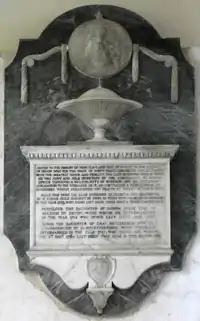 Mural monument in Westleigh Church to John I Clevland (1706–1763) of Tapeley