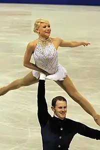 Denney/Coughlin made their season debut at the 2012 Nebelhorn Trophy, winning the silver medal.[26] They won bronze medals at both of their Grand Prix assignments, the 2012 Skate America[27] and the 2012 Rostelecom Cup. On December 4, 2012, Coughlin underwent surgery to repair a torn labrum in his left hip.[28][29] As a result, the pair missed the 2013 U.S. Championships but they submitted a petition to be considered for the U.S. team to the 2013 World Championships.[30] They were named in the U.S. team to the event but decided not to compete.[31][32] Coughlin was off the ice for about nine weeks.[33]