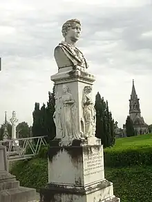 Sir John Gray died at Bath, in England, on 9 April 1875. His remains were returned to Ireland and he was honoured with a public funeral at Glasnevin Cemetery. Almost immediately afterwards public subscriptions were sought for the erection in O'Connell Street, of a monument to Gray. The monument was completed in 1879 and was dedicated to the "appreciation of his many services to his country, and of the splendid supply of pure water which he secured for Dublin".[11] His legacy also included his contributions to the passage of the Irish Church and Land Bills, his advocacy for tenant's rights[7] and his support of the Home Rule movement.