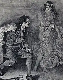 When Murdoch was about to leave to work in Carrick he decided to spend the night with the Burnes family and brought a small compendium of English Grammar and the book Titus Andronicus. Murdoch read the play out loud and all went well until till he came to the part where a female in the play has her hands cut off and her tongue cut out. At this point, the family "with one voice desired that he would read no more". William Burnes observed, that "if we would not hear it out, it would be needless to leave the play with us. Robert replied that if it was left he would burn it". William considered rebuking Robert for this response to his tutor's kindness, but Murdoch commented "that he liked to see so much sensibility". He left instead a comedic work, the School for Love.[10]